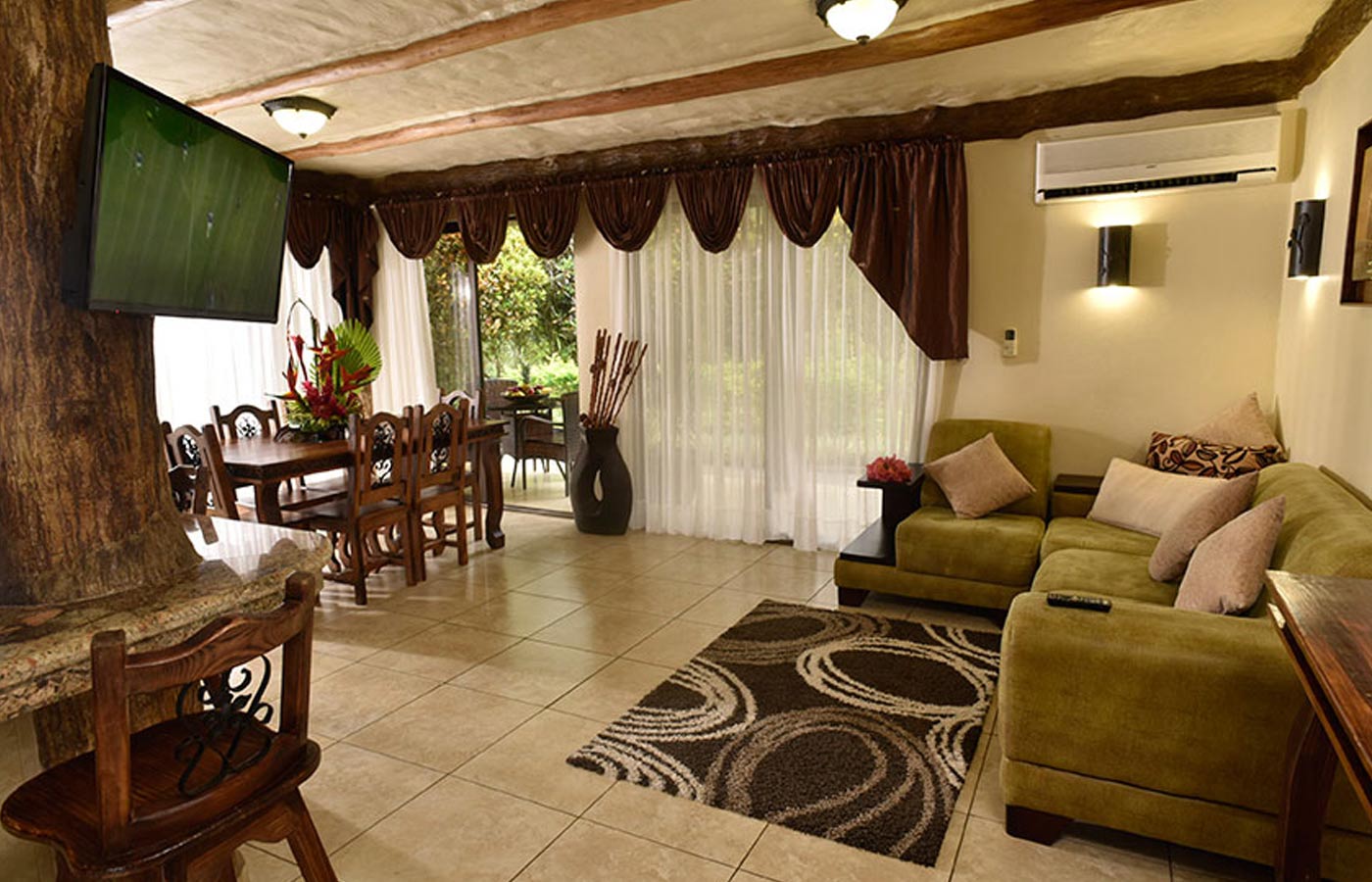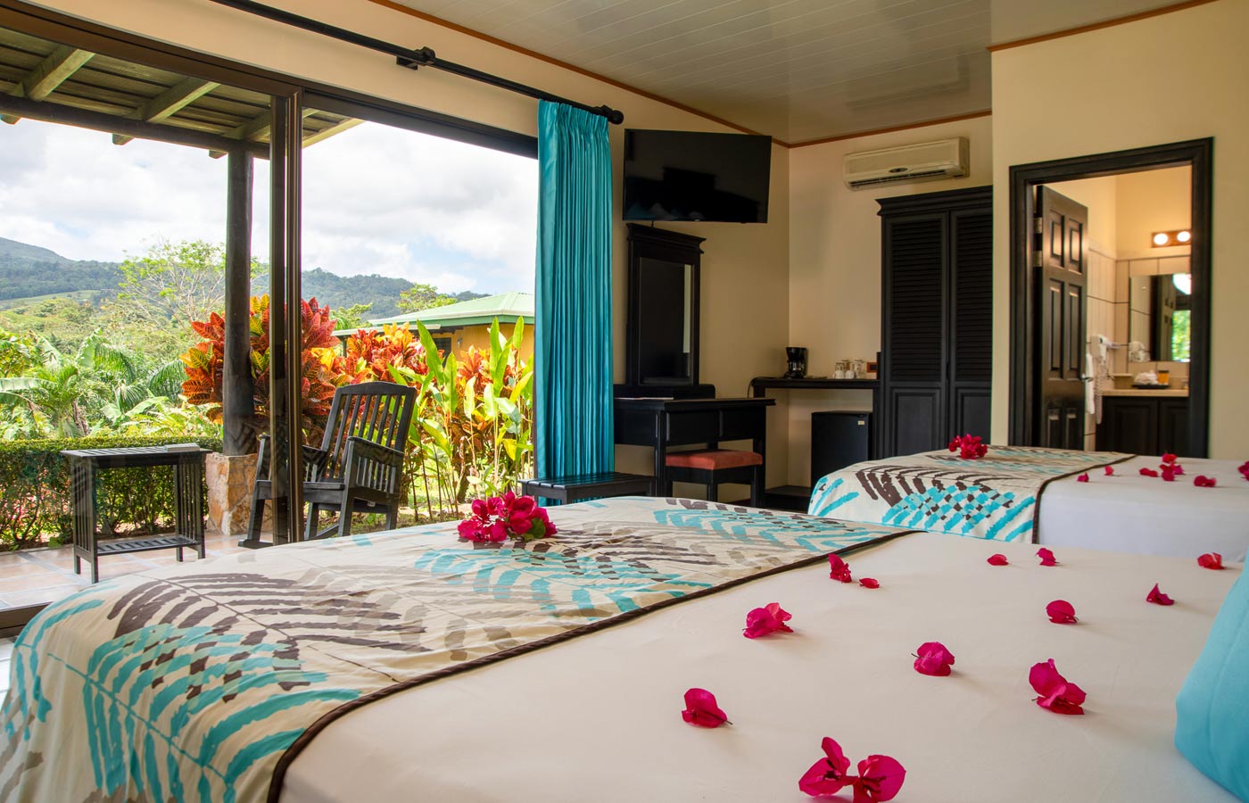 The hotel boasts a variety of beautifully appointed suites. Each one is equipped with queen sized beds, amenities and the most spectacular view of the Arenal Volcano from your own porch.