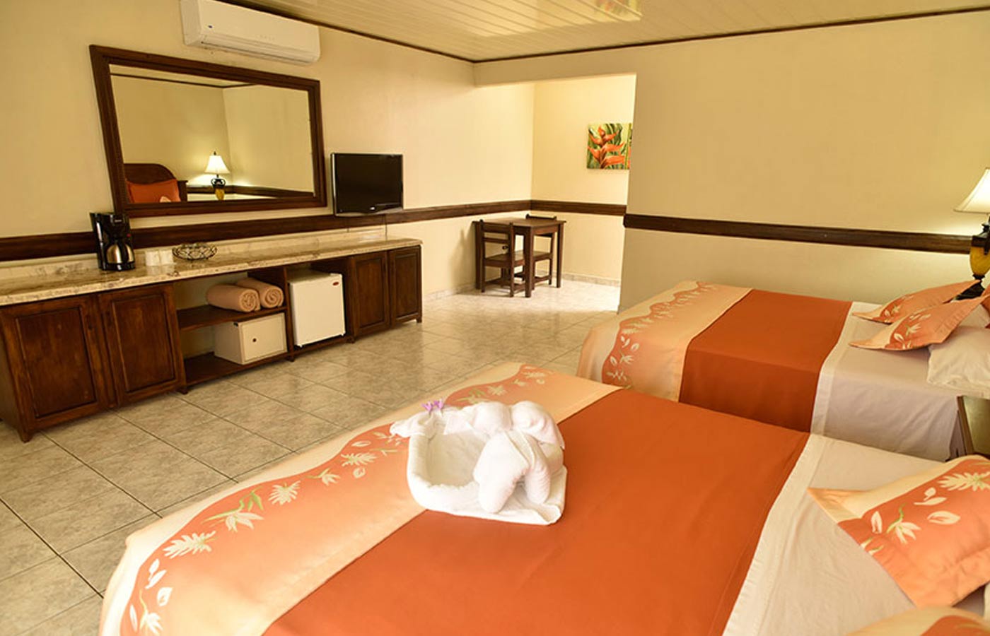 Enjoy the most plentiful breakfast, including Costa Rican “gallo pinto”, you may ever have. You can find pleasure and fun at the pool & hot springs hotel facilities; and relax, health & beauty at the Spa Resort. So be happy and let the natural hot springs by the Arenal volcano internal healthy energy & minerals complements all of your Costa Rica Vacation package activities, such that those into the nature or adventure tours.