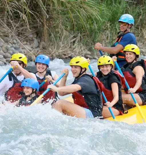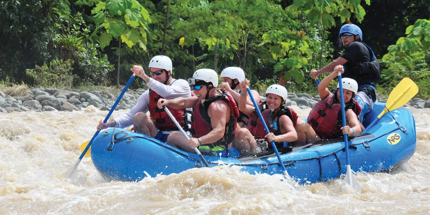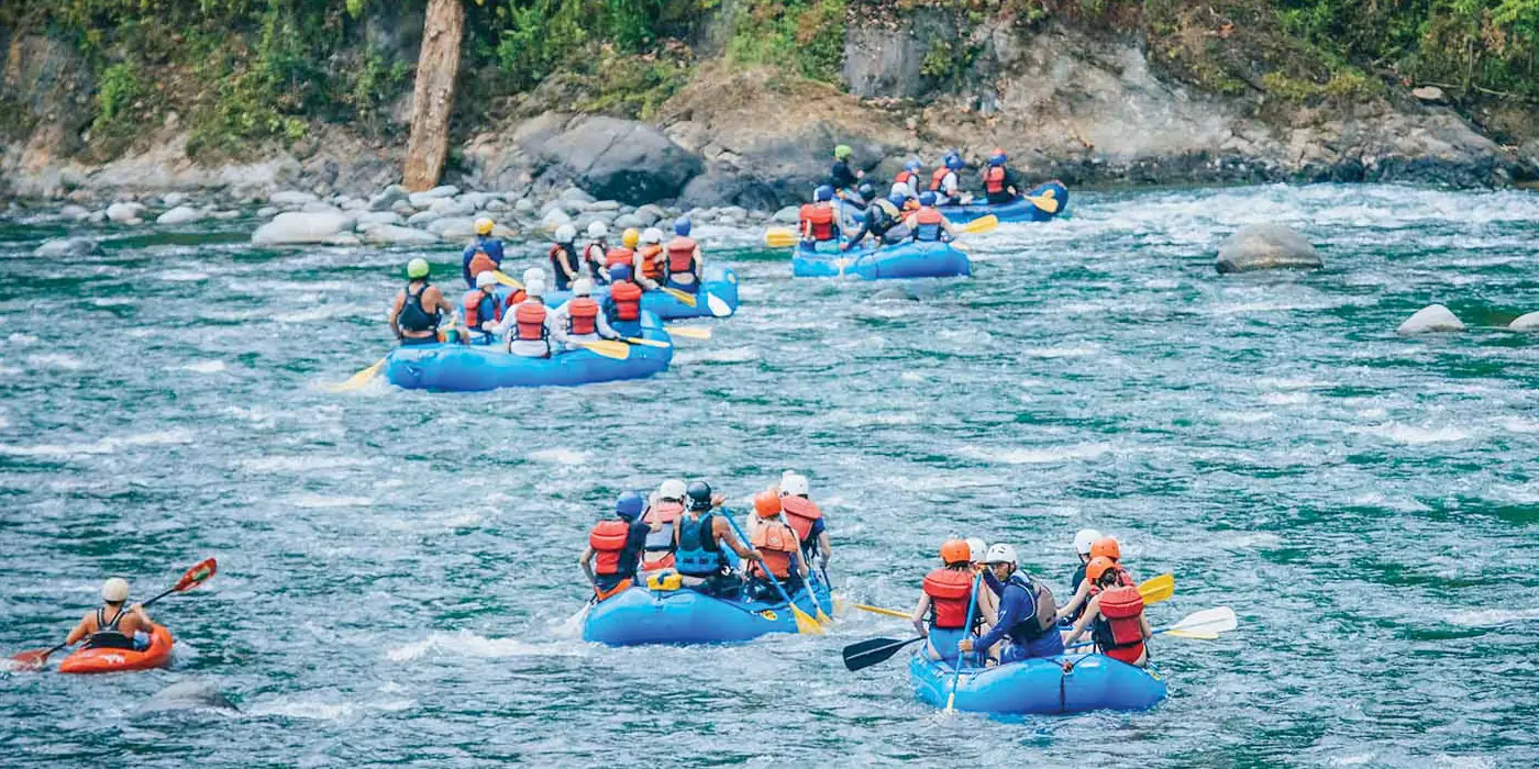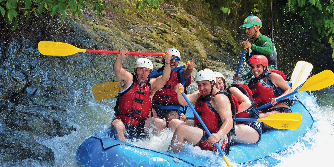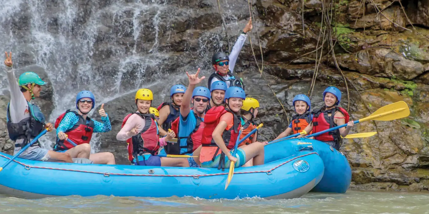We run the river section from Rafiki Lodge, where we stop for our clients to use the restrooms before the adventure begins. We will pick up our clients and we will travel for about 45 minutes in our air conditioned bus to the river. Once at the river we will provide the necessary equipment and deliver our safety rules and guidelines to be followed during the tour. Just about 15 minutes into the river rafting experience we will stop for a swim at a beautiful waterfall and have some fruits and water. At the end of the journey we will provide a full lunch to our clients while our photographers show a presentation of their pictures for the day. After this we will head back to their hotels.